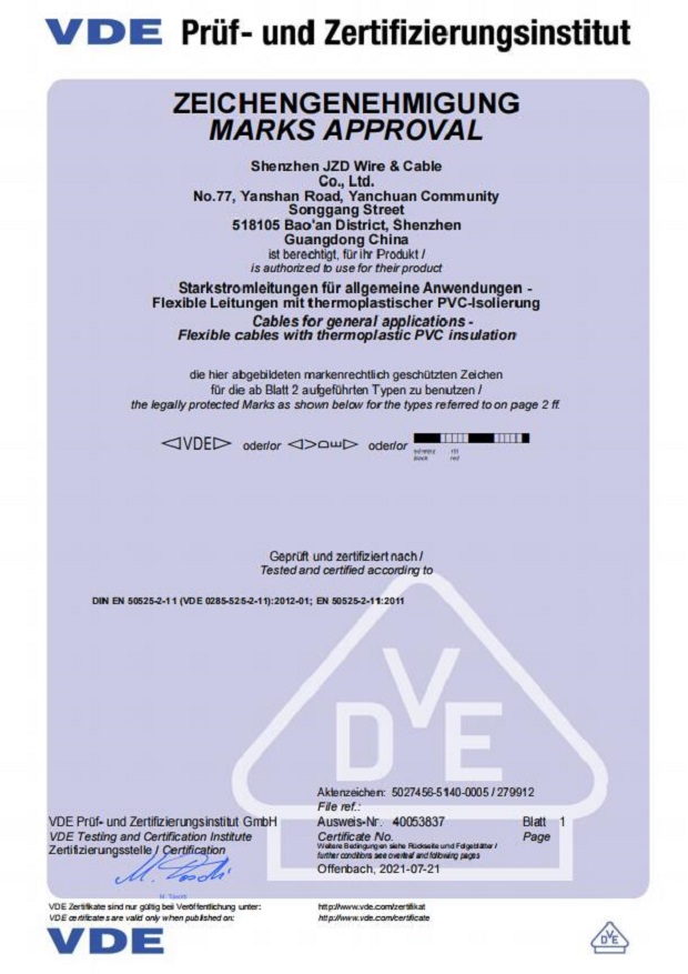德國(guó)VDE電線電纜資質(zhì)認(rèn)證20210721